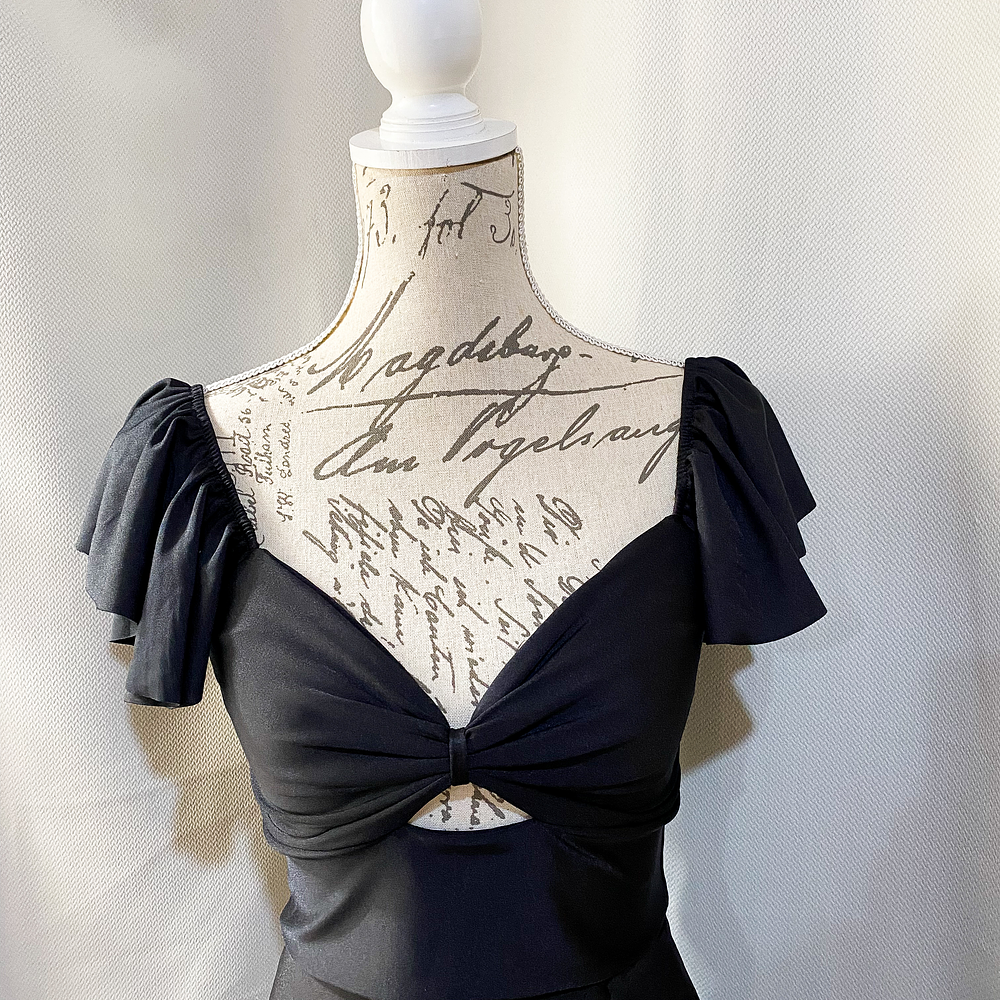 Freya Top, un diseño romántico con un toque de atrevido, escote tipo corazón y un pequeño escote bajo el busto, vuelos en sus mangas y espalda escote cuadrado.